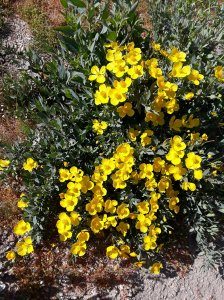 We walked over and between rounded hillsides dotted with old burned tree branches and the new growth of bush poppies in bloom.