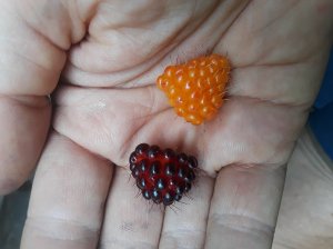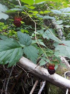 We ate blueberries, huckleberries, salmonberries, and – wait! Were those black salmonberries? Jay and I had never seen such a berry!