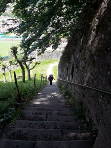 65 steep and uneven stone steps along the medieval wall led to the peak of St Jean Pied-du-Port.