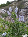 As we hike, I feel we are between desert and forest. Blooming bushes intermingle with cactus. Clouds scud across the sky, making rain a possibility. We’re not in the desert yet, but the progression of plant life gets steadily drier.