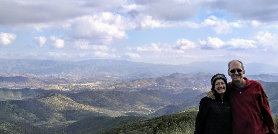 The trail gained the ridge top, but kept on climbing. The cool wind, so welcome in Agua Dulce, became a bit insistent, prompting me to wear warm hat and coat.