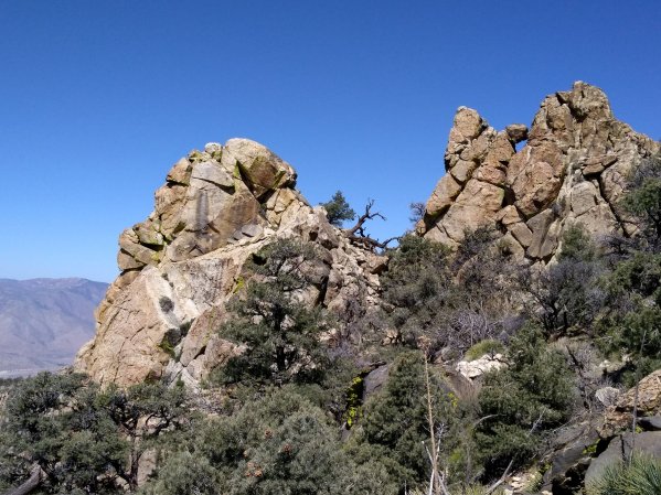 Just then, the trees opened up as the trail contoured across a scree field. Above Jay’s head loomed a giant pointed mountain with towers and castles off each side! Where had that come from? “Jay!” I called out. “Oh my gosh! What is that?”