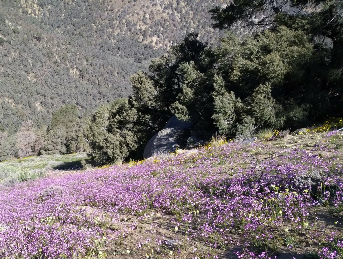The importance of water is a lesson the PCT teaches again and again. Though this area boasts of many ponds, lakes, streams, and springs, the actual trail tends to stick to the tops of ridges, making for a very dry walk with steep side trips to fetch life-giving liquid. Thus, you can imagine our delight and appreciation this morning when we came across a water cache left by a trail angel named Devilfish.